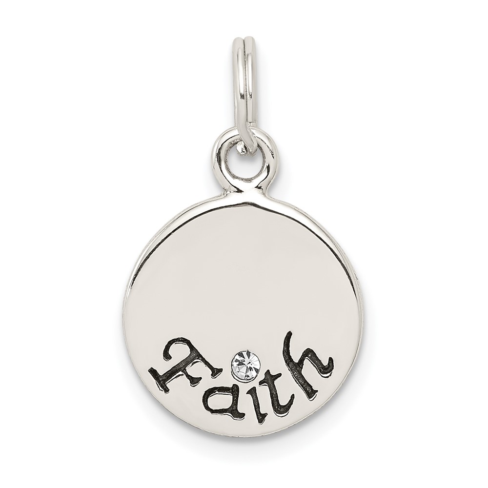 Sterling Silver Antiqued Stellux Crystal Faith Charm