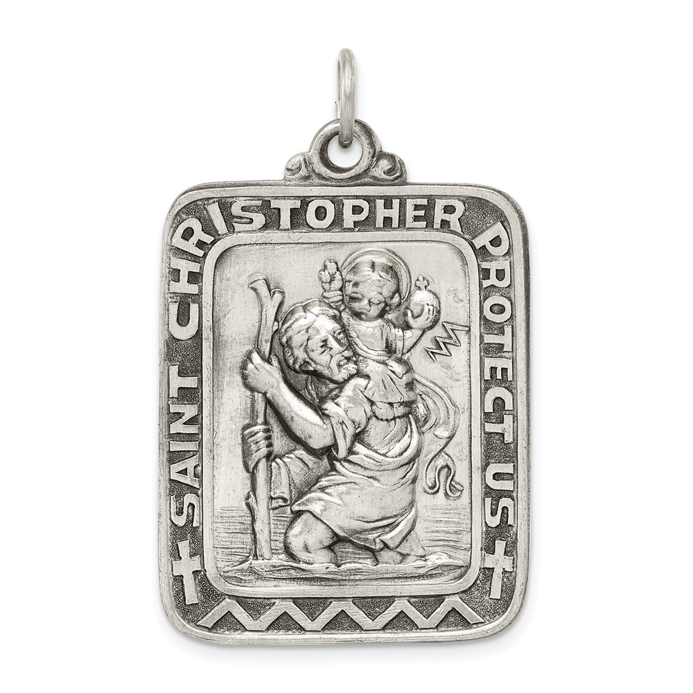 Sterling Silver Antiqued Saint Christopher Medal