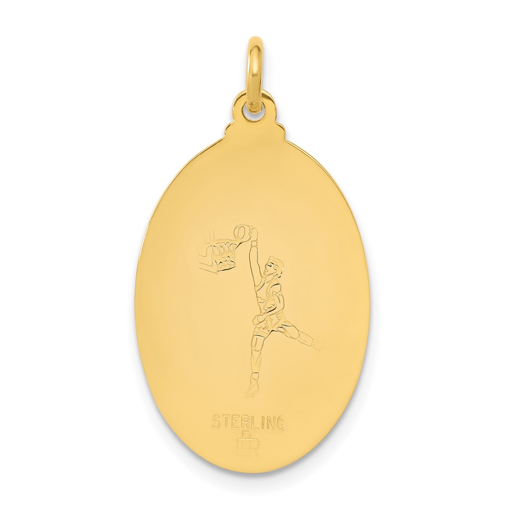 Sterling Silver 24k Gold-plated Saint Christopher Basketball Medal Pendant