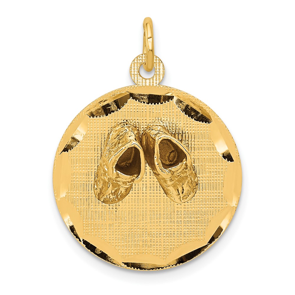 14k Small Solid Engravable Baby Shoes on 19mm Disc Charm
