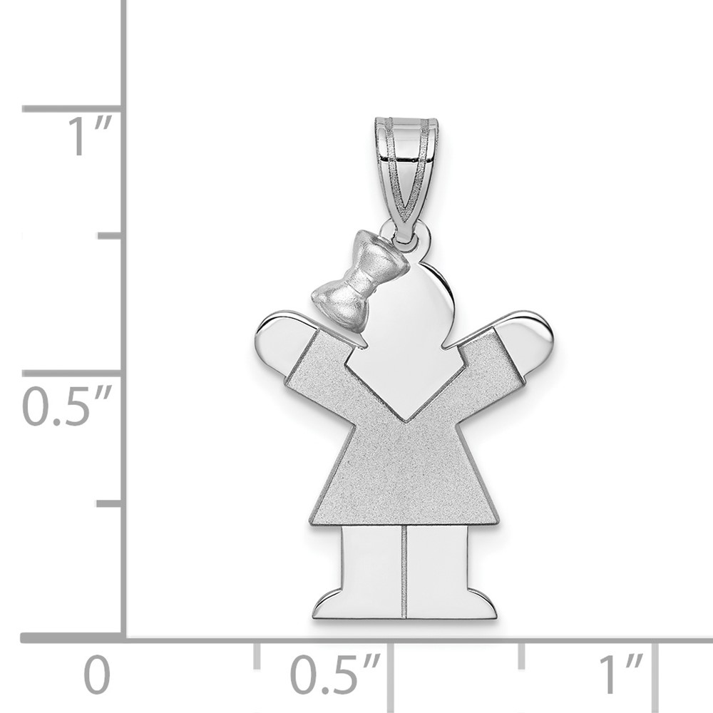 14k White Gold The Kids Small Girl with Bow on Left Engravable Love Charm