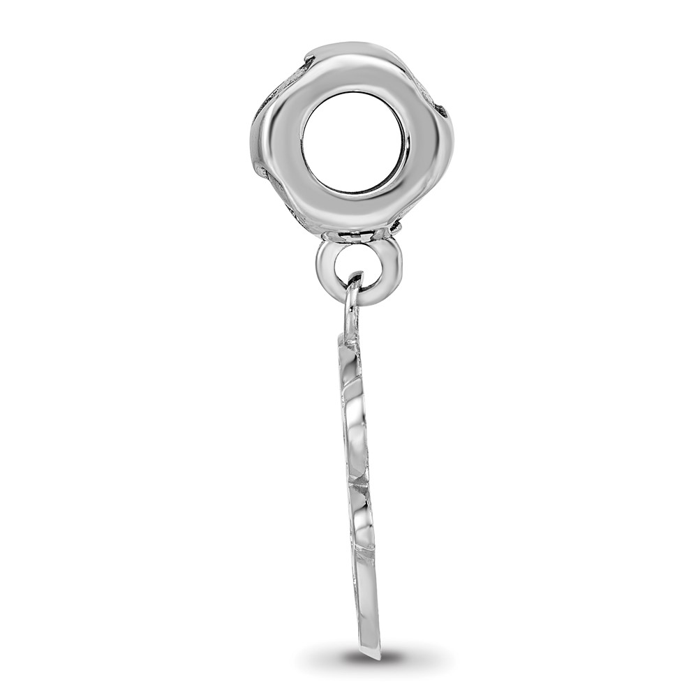 Sterling Silver Rh-plated LogoArt Baltimore Orioles Bird Head Heart Bead