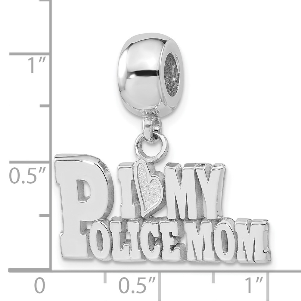 Sterling Silver I Heart My Police Mom Polished Dangle Bead