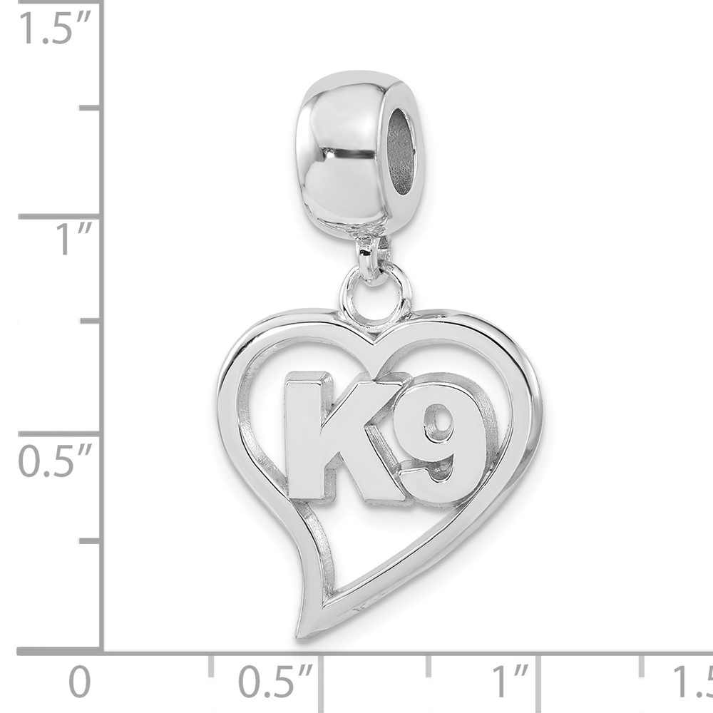 Sterling Silver Polished K9 Heart Dangle Bead