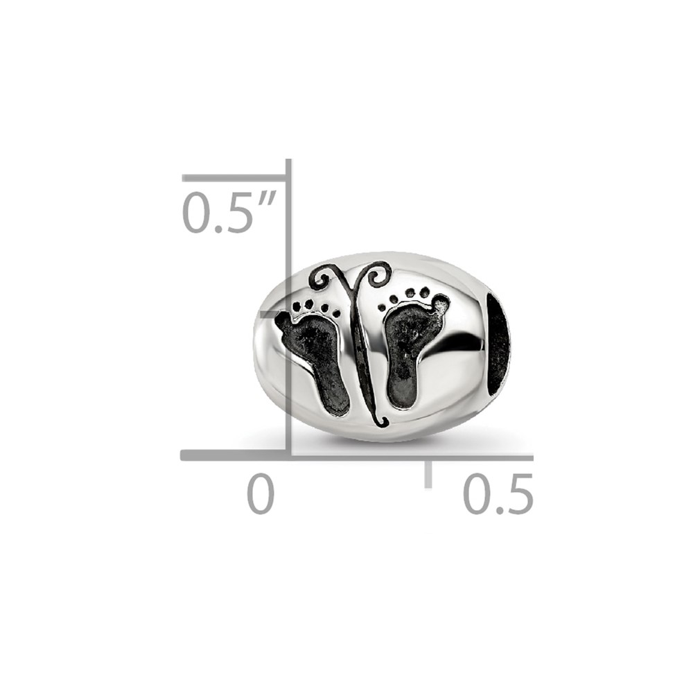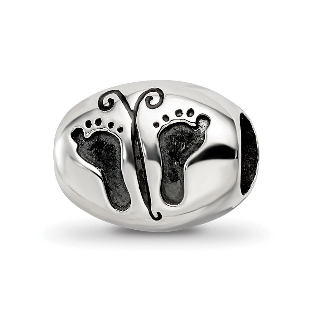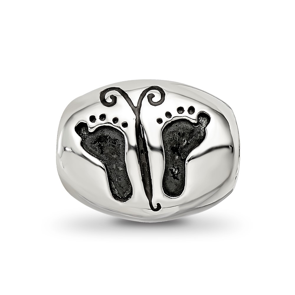 Sterling Silver Reflections Antiqued Baby Feet Butterfly Bead