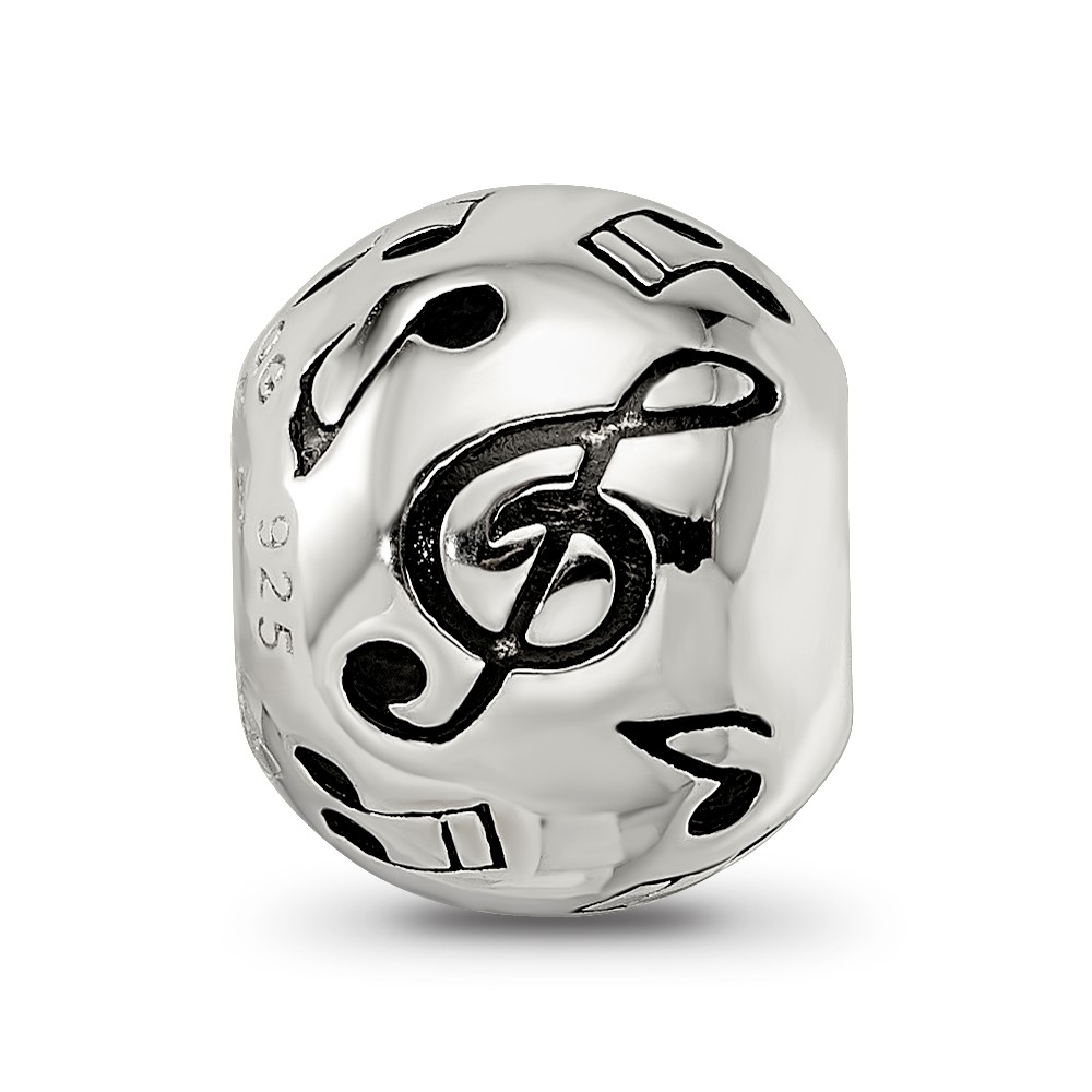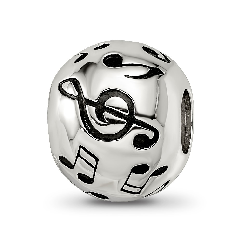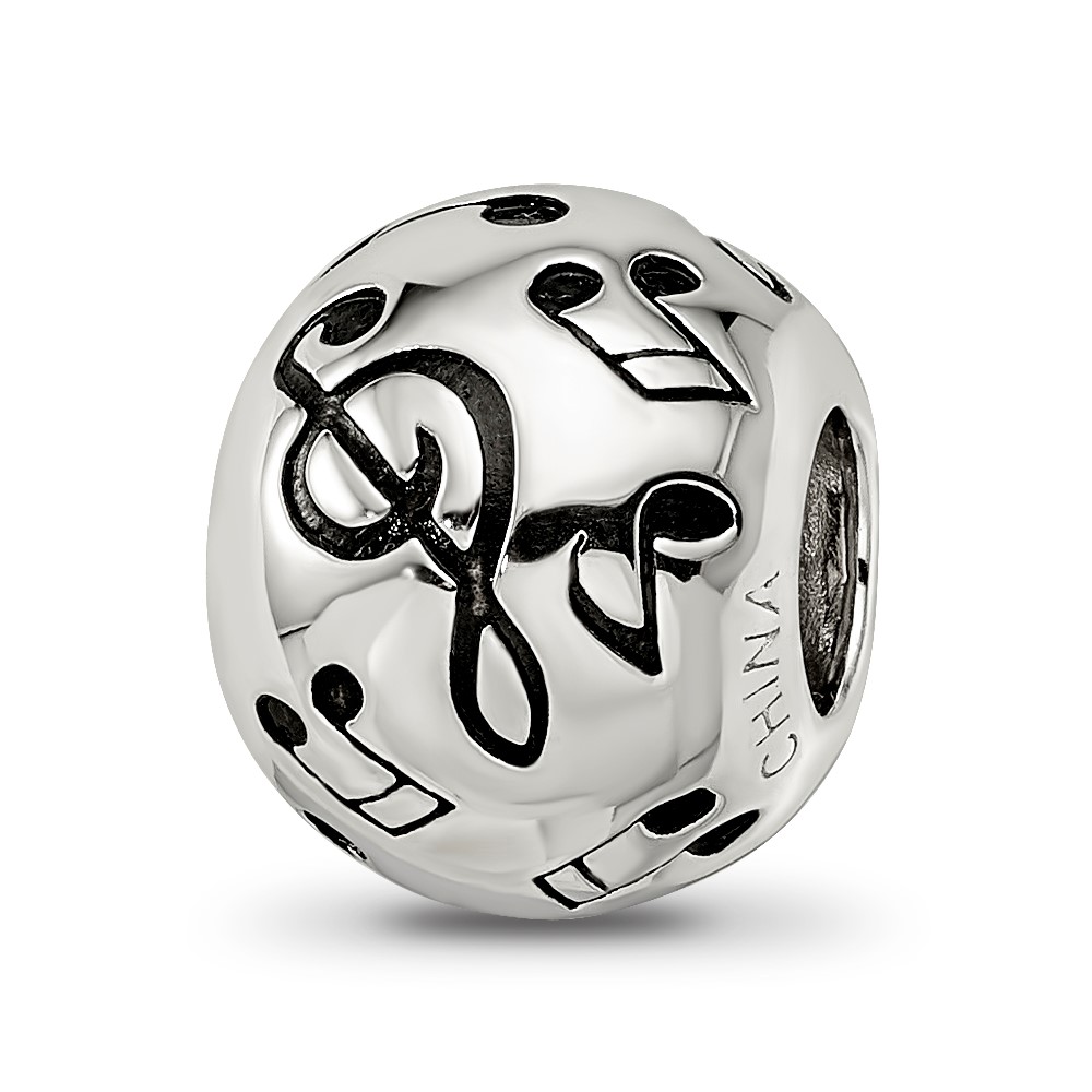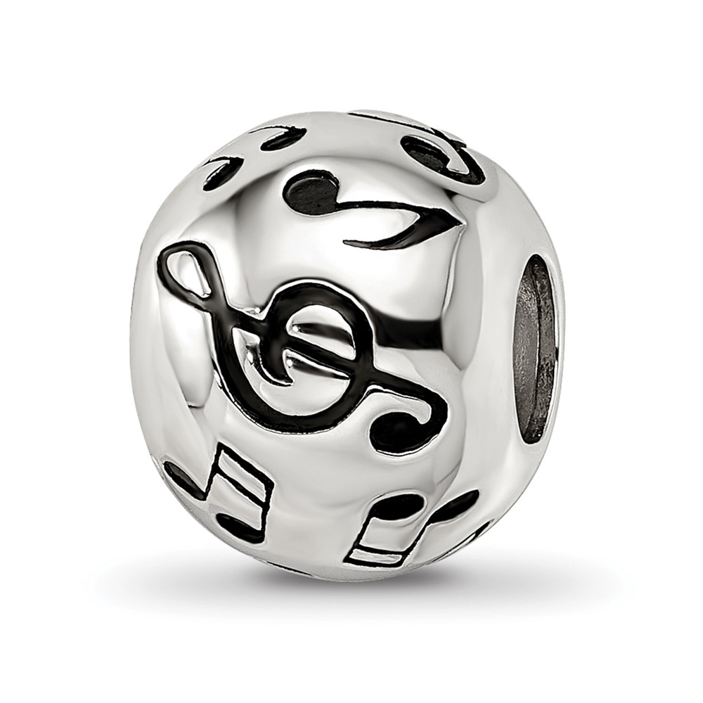 Sterling Silver Reflections Rhodium-plated Enameled Musical Notes Bead