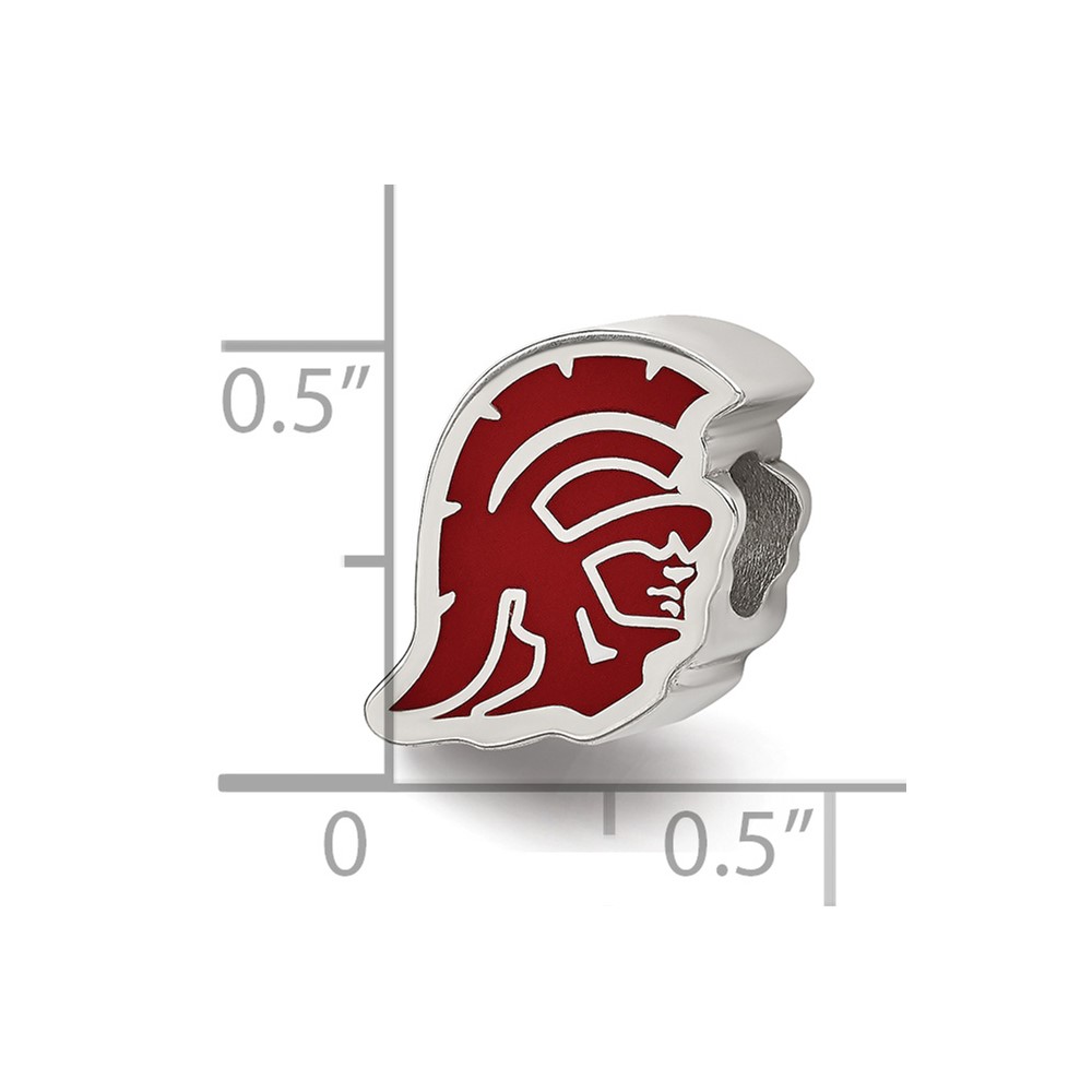 Sterling Silver Rhodium-plated LogoArt University of Southern California Trojan Head Extruded Enameled Bead