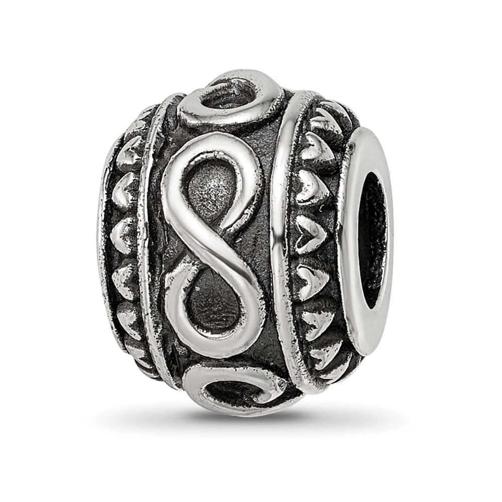 Sterling Silver Reflections Antiqued Infinity & Heart Pattern Bead