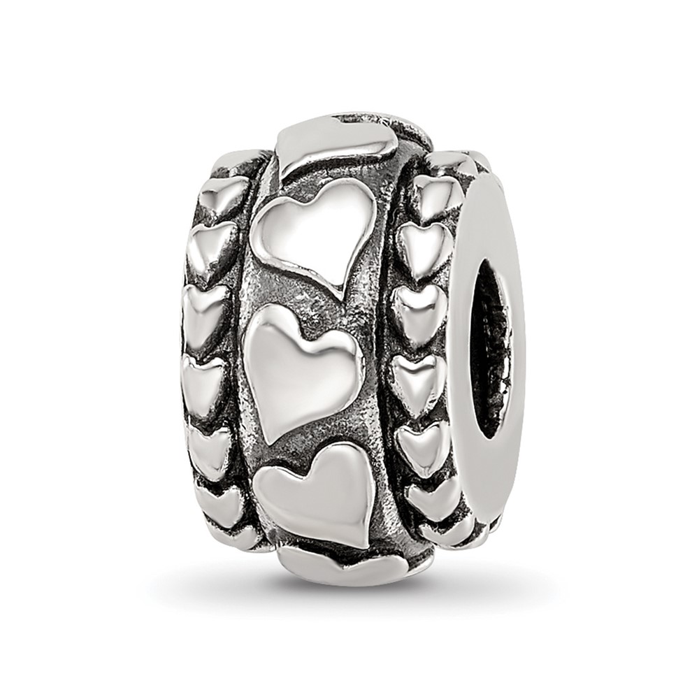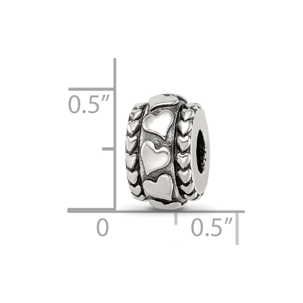 Sterling Silver Reflections Antiqued Hearts Pattern Bead