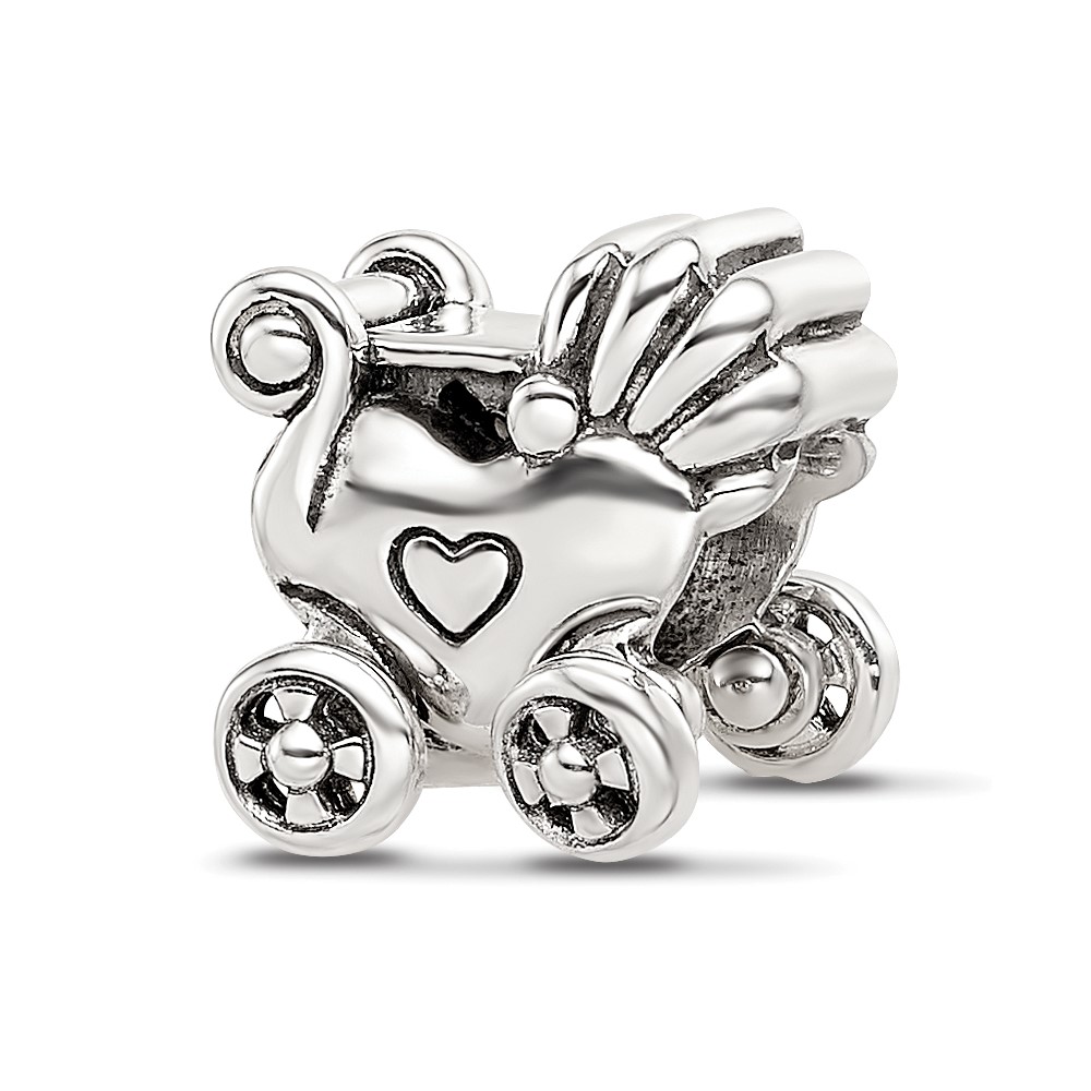 Sterling Silver Reflections Antiqued Baby Carriage Moveable Wheels Bead