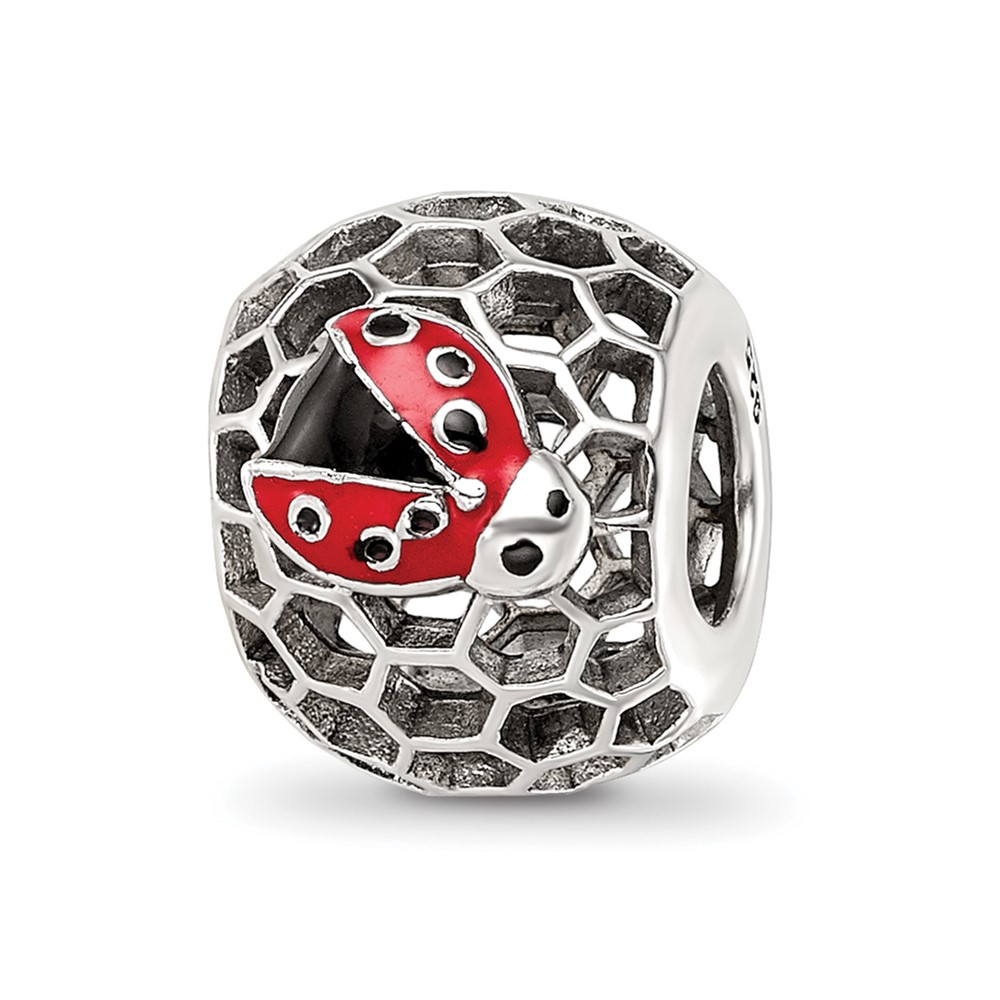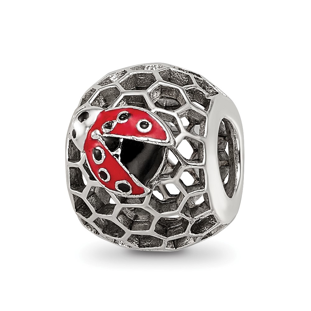 Sterling Silver Reflections Rhodium-plated Enamel Lady Bug Bead