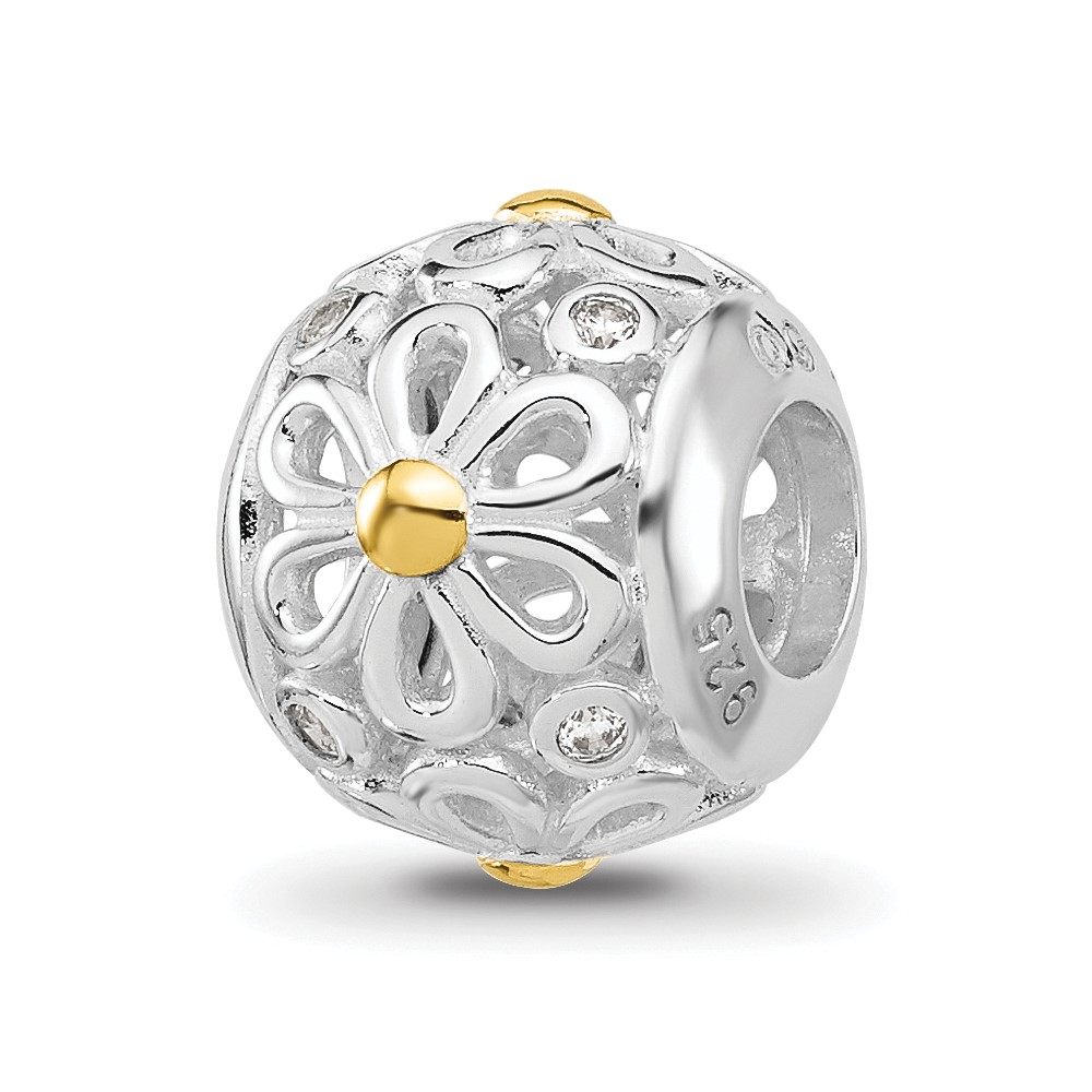 Sterling Silver Reflections Rhodium & Gold Plated Floral Bead