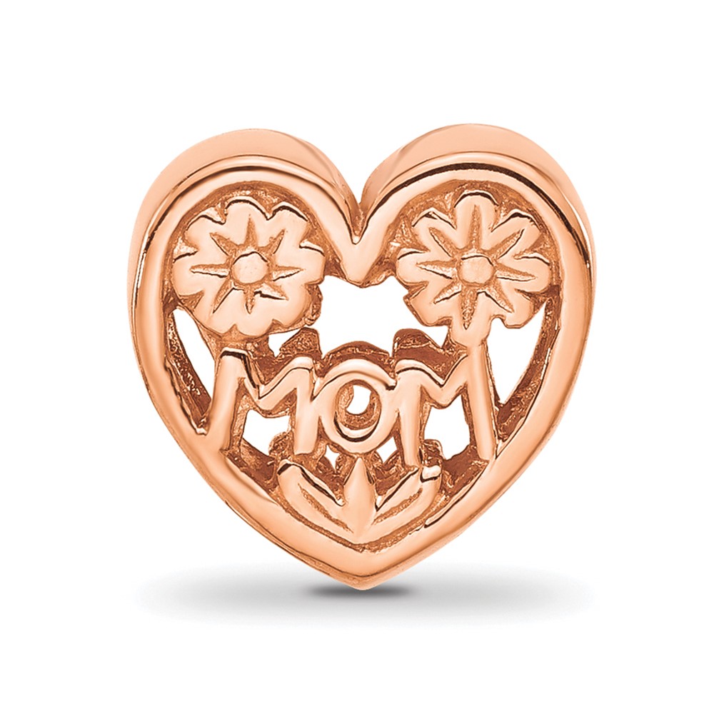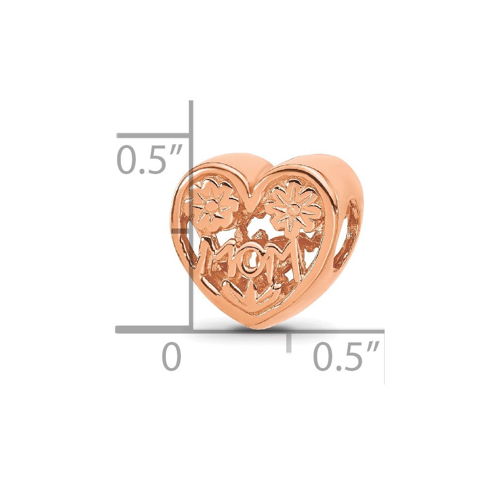 Sterling Silver Reflections Rose Gold-plated Floral Mom Heart Bead