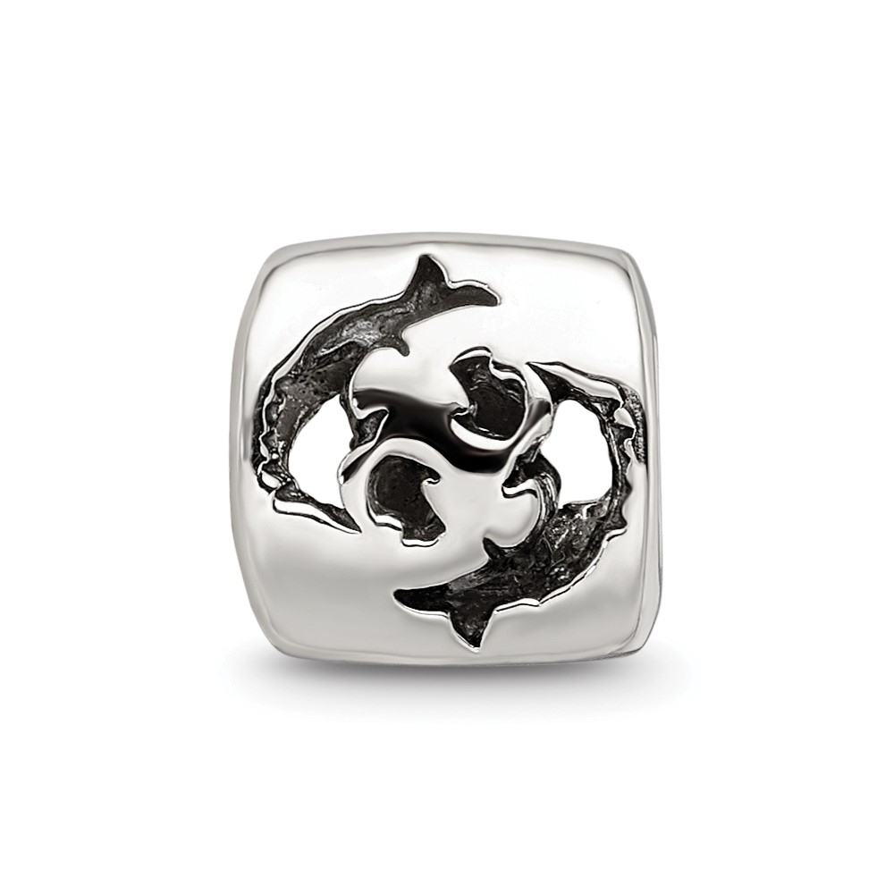 Sterling Silver Reflections Pisces Zodiac Antiqued Bead