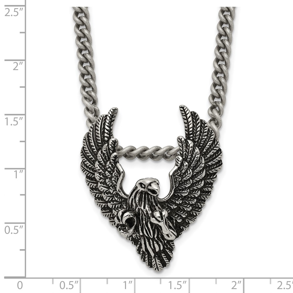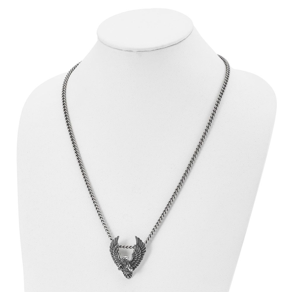 Chisel Stainless Steel Antiqued and Polished Eagle Pendant on a 24 inch Curb Chain Necklace