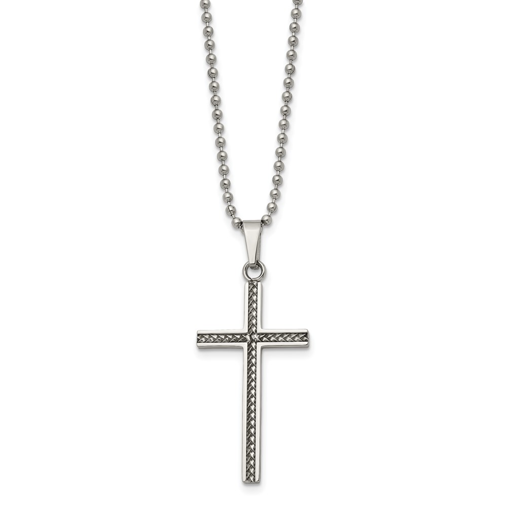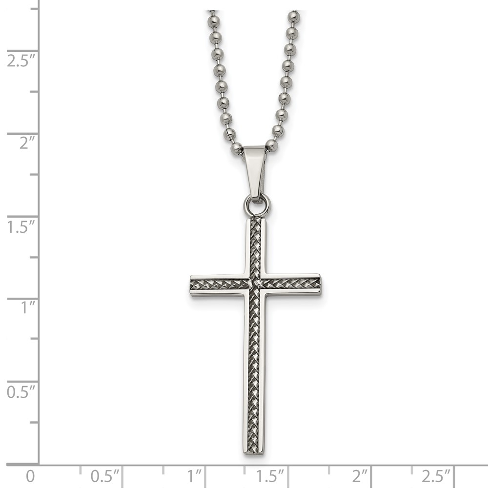 Chisel Stainless Steel Polished and Textured Braided Design Cross Pendant on a 20 inch Ball Chain Necklace