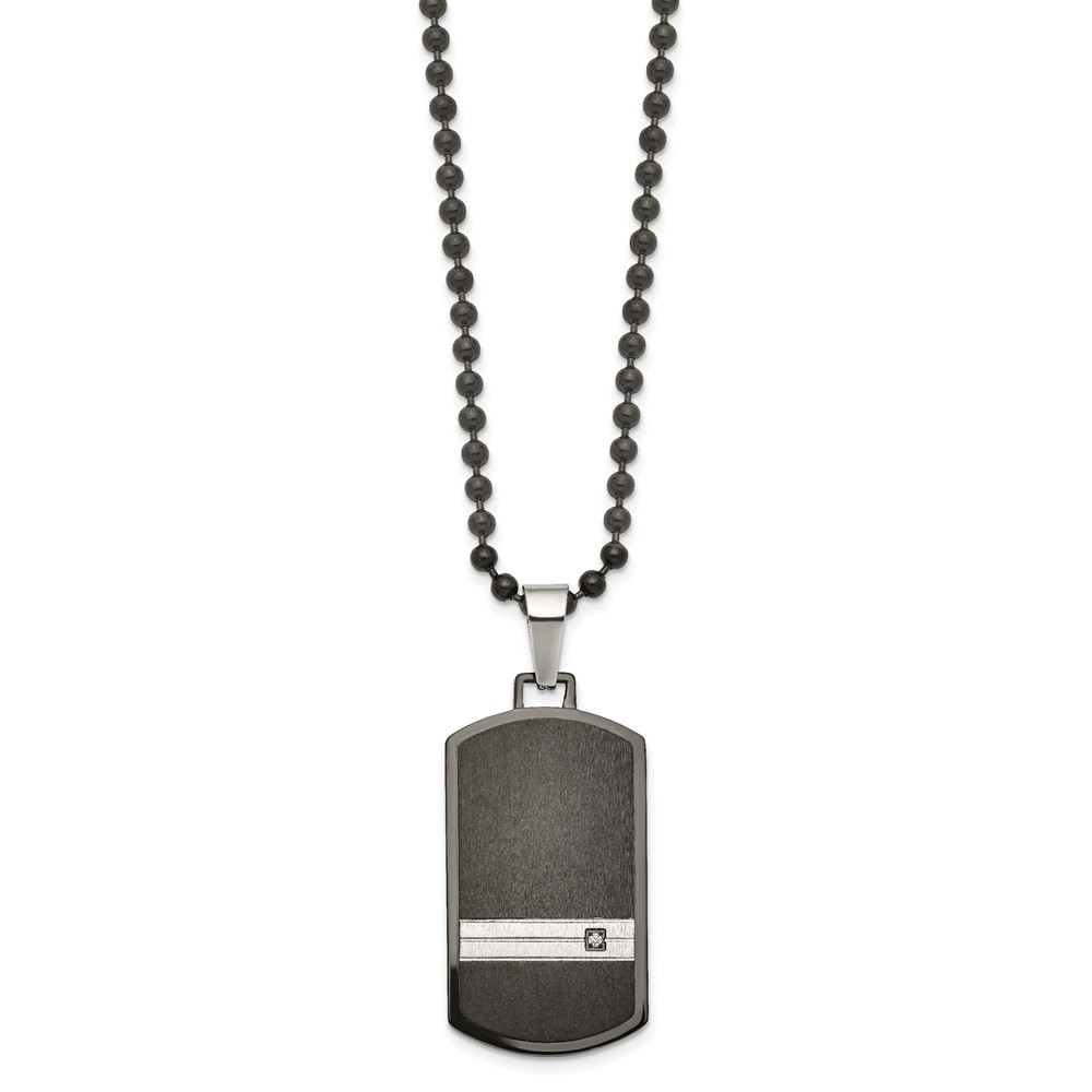 Chisel Stainless Steel Brushed and Polished Black IP-plated with CZ Dog Tag on a 24 inch Ball Chain Necklace