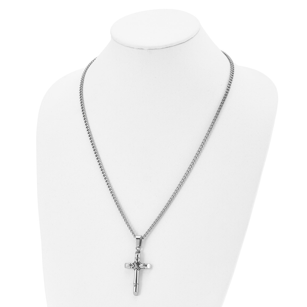 Chisel Stainless Steel Antiqued and Polished Reversible Cross Pendant on a 24 inch Curb Chain Necklace