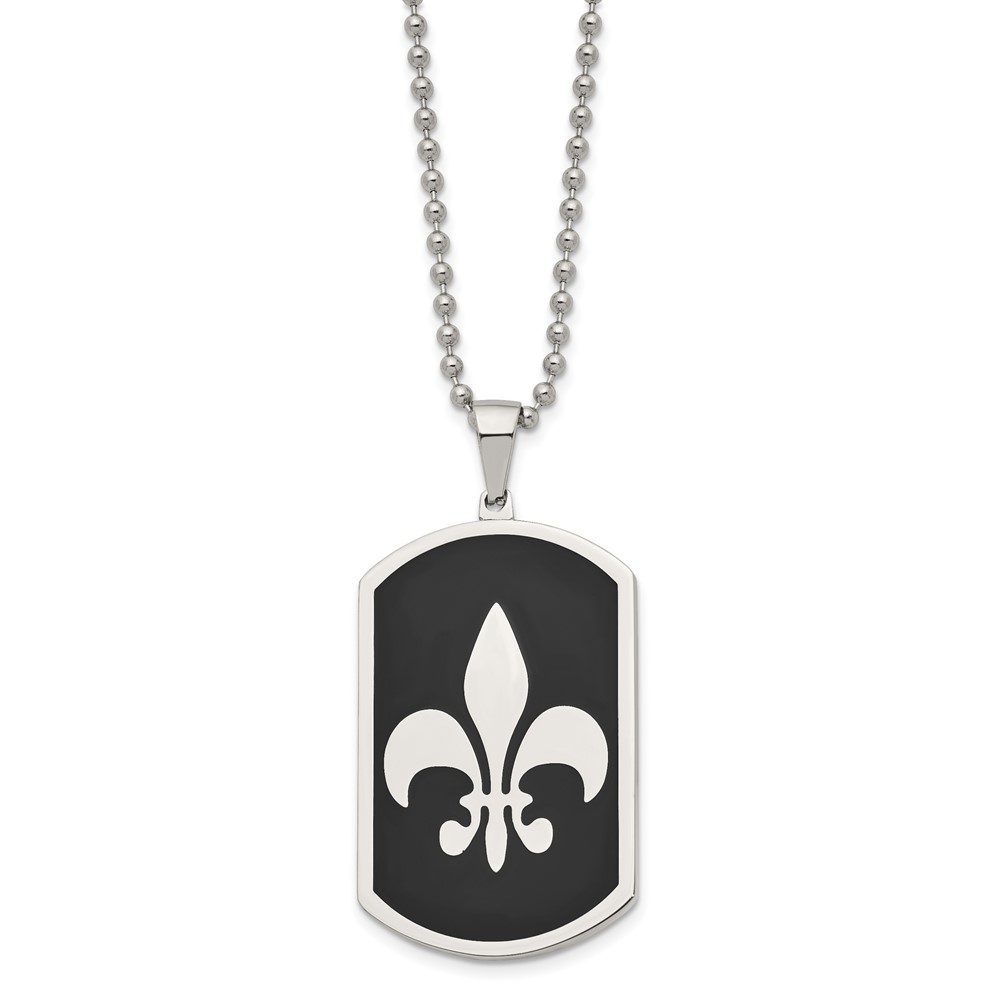 Chisel Stainless Steel Polished Black IP-plated Fleur de lis Dog Tag on a 24 inch Ball Chain Necklace