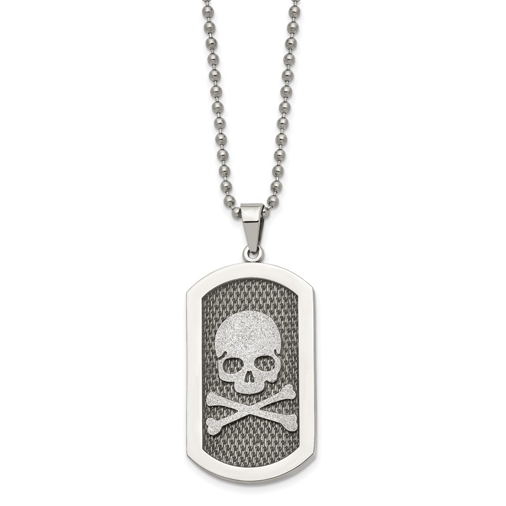 Chisel Stainless Steel Brushed and Polished Laser Cut Skull and Crossbones Dog Tag on a 24 inch Ball Chain Necklace