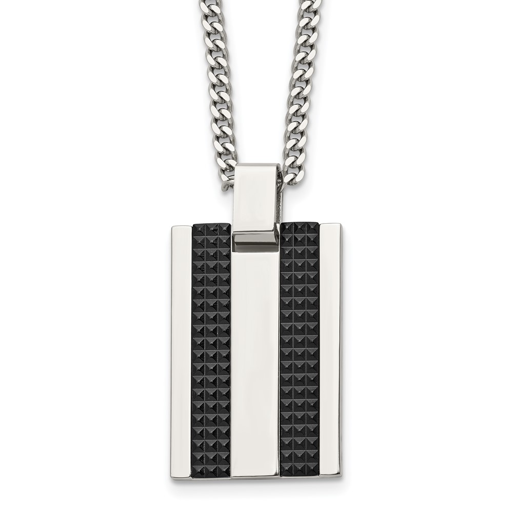 Chisel Stainless Polished and Textured Black IP-plated Rectangle Dog Tag on a 22 inch Curb Chain Necklace