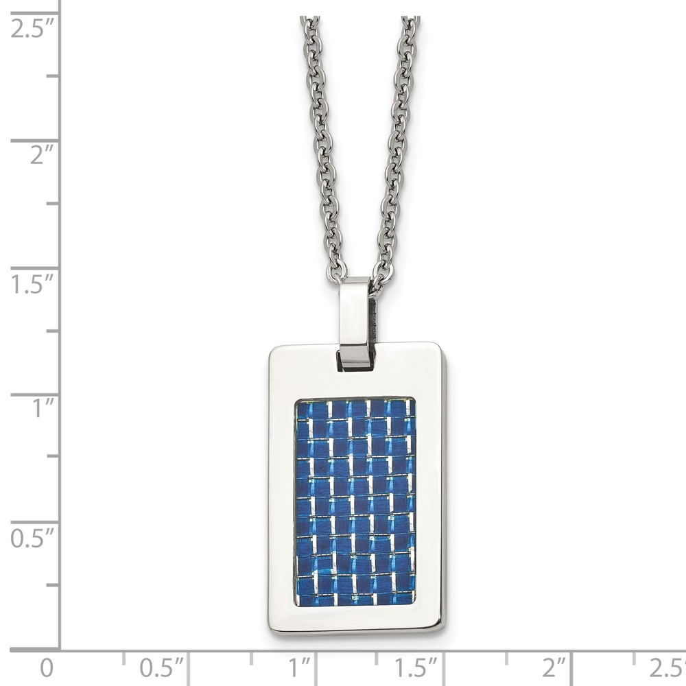 Chisel Stainless Steel Polished with Blue Carbon Fiber Inlay Rectangle Dog Tag on a 22 inch Cable Chain Necklace