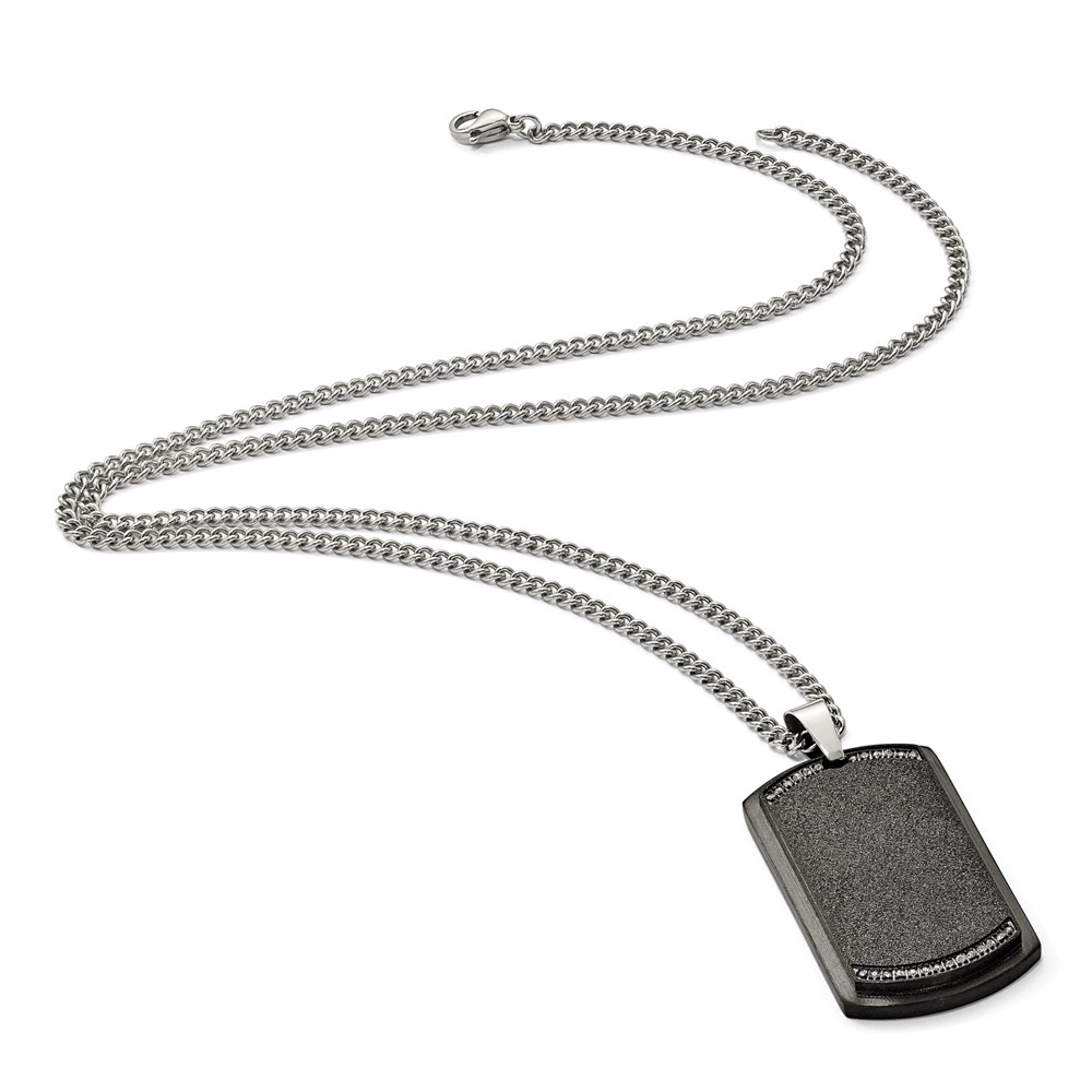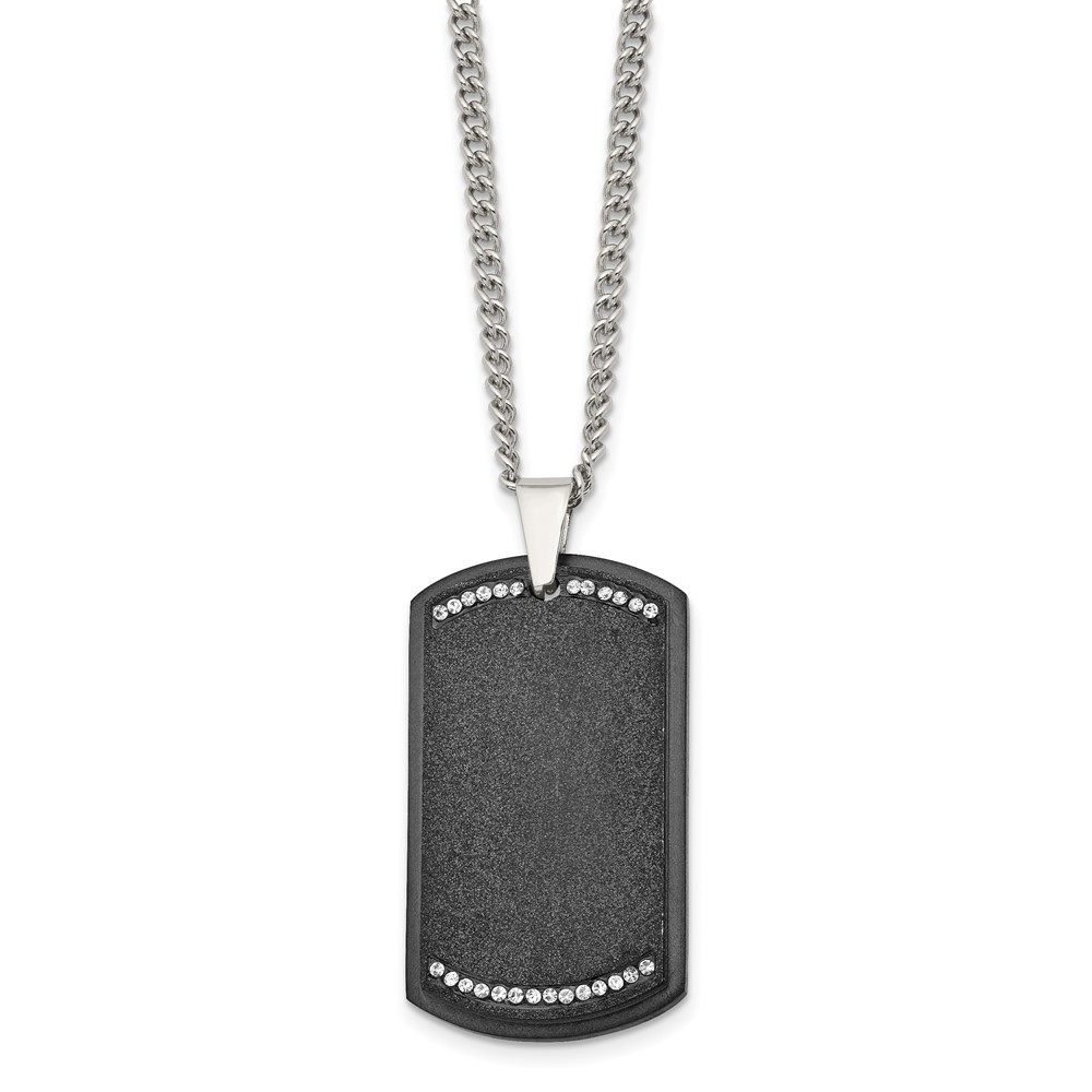 Chisel Stainless Steel Brushed Laser Cut Black IP-plated with CZ Dog Tag on a 24 inch Curb Chain Necklace