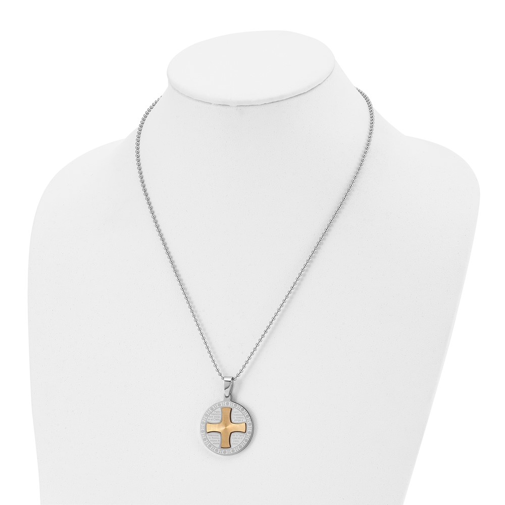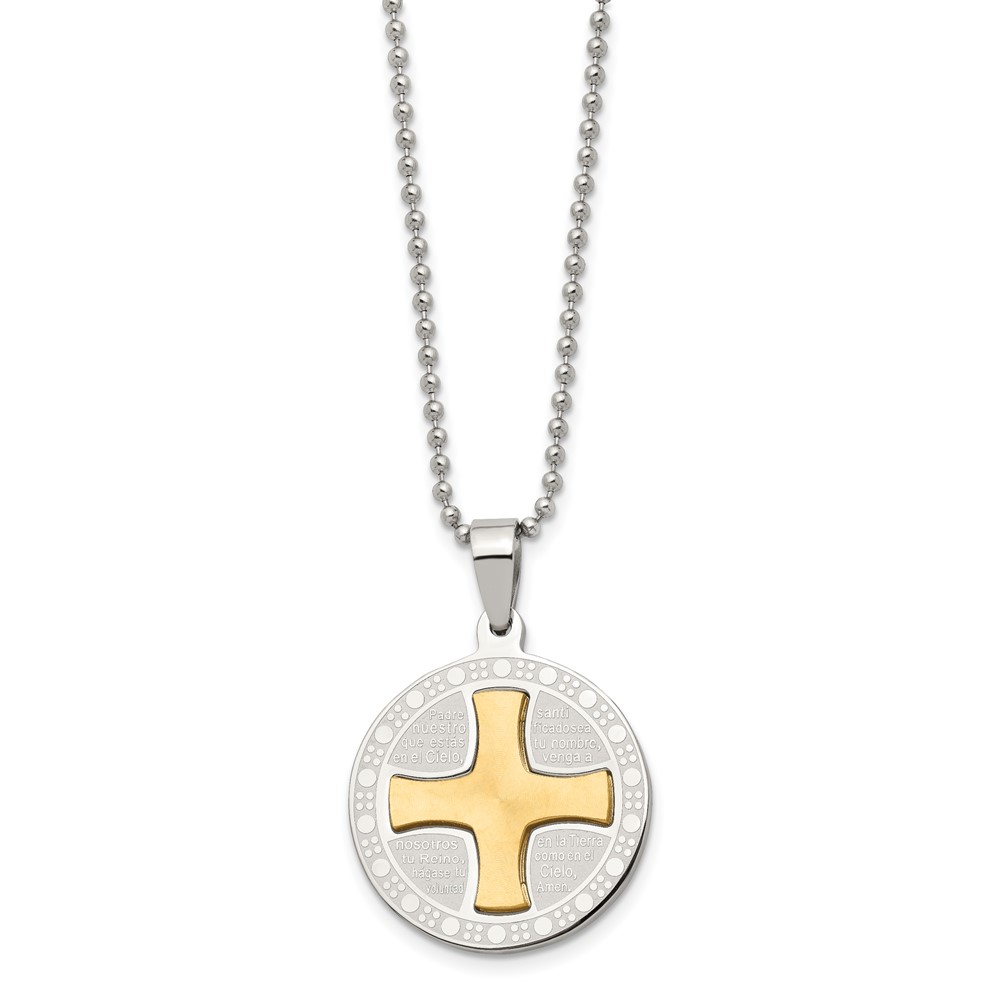 Stainless Steel Brushed/Polished Yellow IP Spanish Lords Prayer Necklace