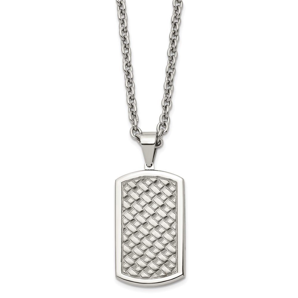 Chisel Stainless Steel Polished Weaved Pattern Dog Tag on a 24 inch Cable Chain Necklace