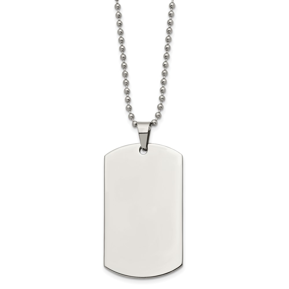 Chisel Stainless Steel Brushed and Polished Rounded Edge 2mm Dog Tag on a 24 inch Ball Chain Necklace