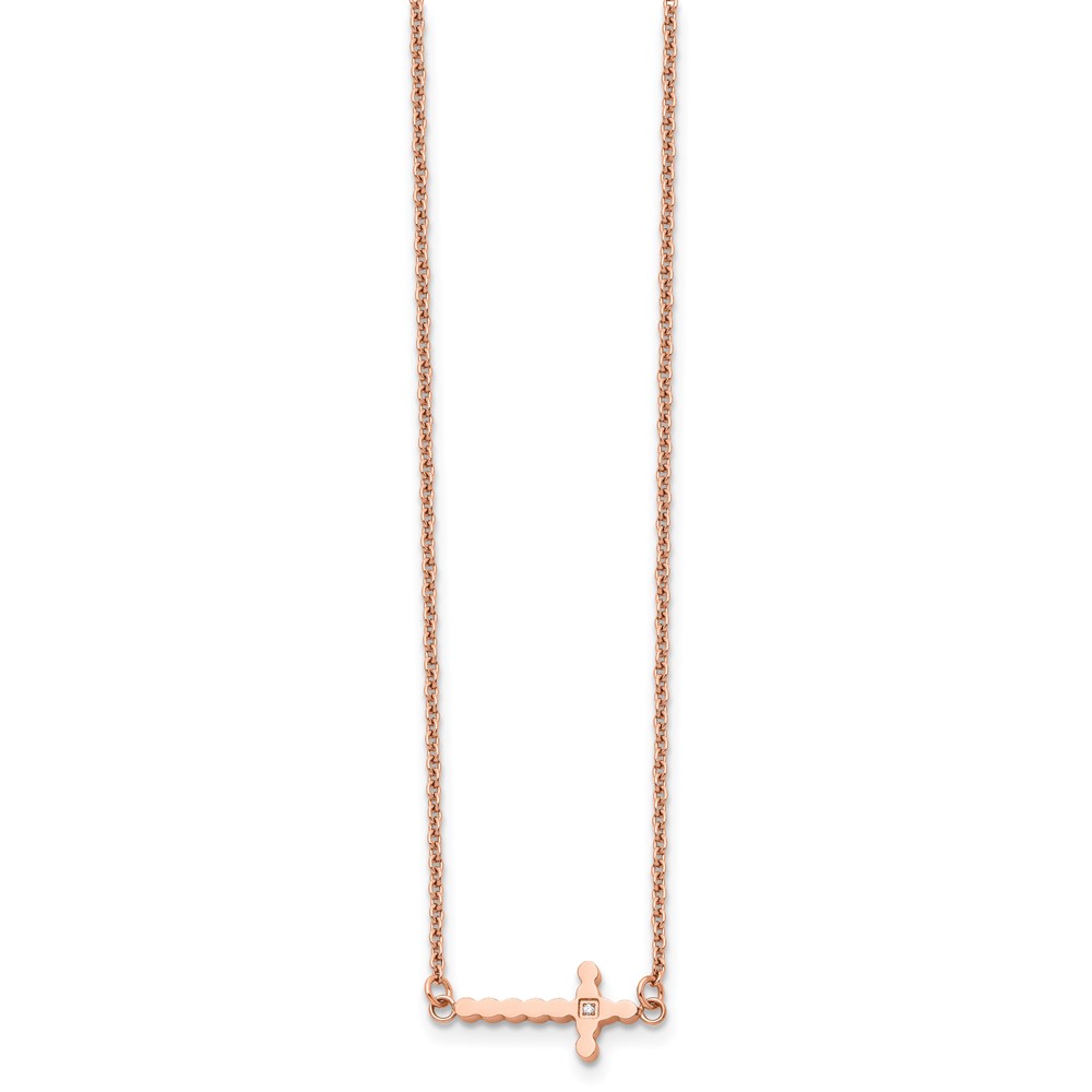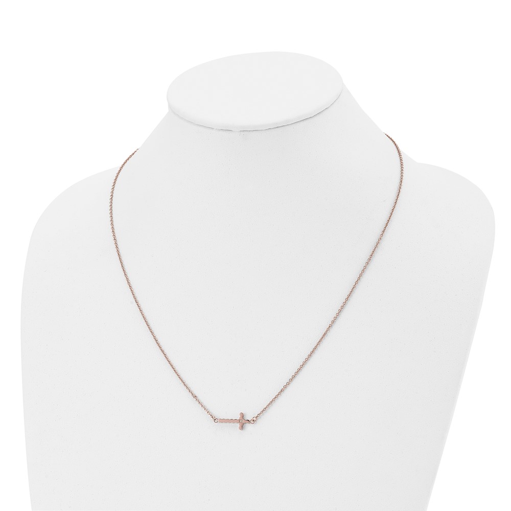 Chisel Stainless Steel Polished Rose IP-plated with CZ Sideways Cross on a 21.25 inch with 4.25in extension Cable Chain Necklace