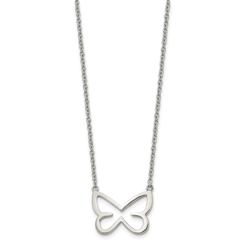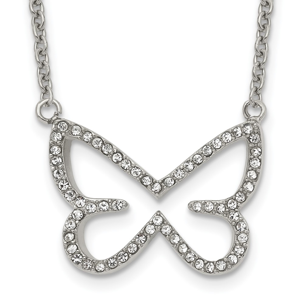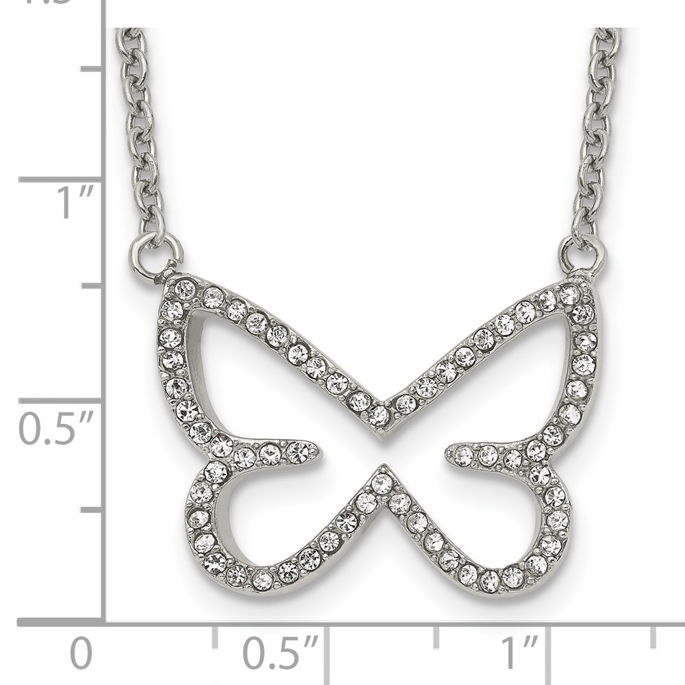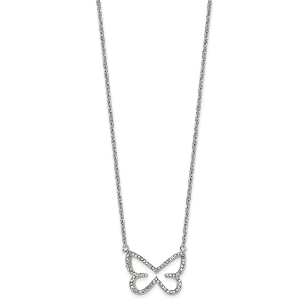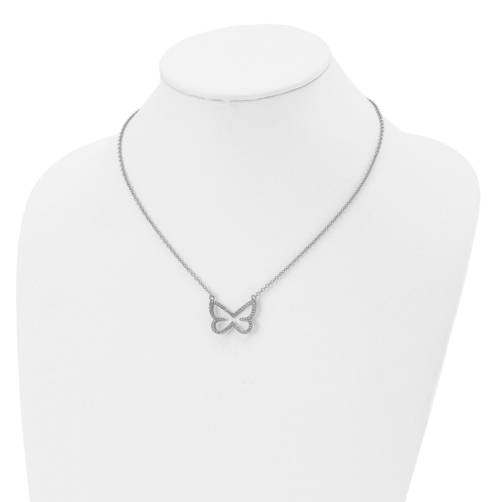 Stainless Steel Polished w/CZ Butterfly 18in Necklace