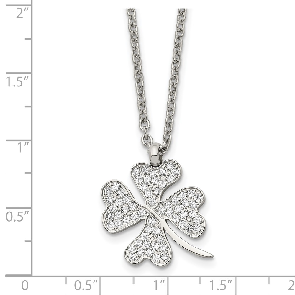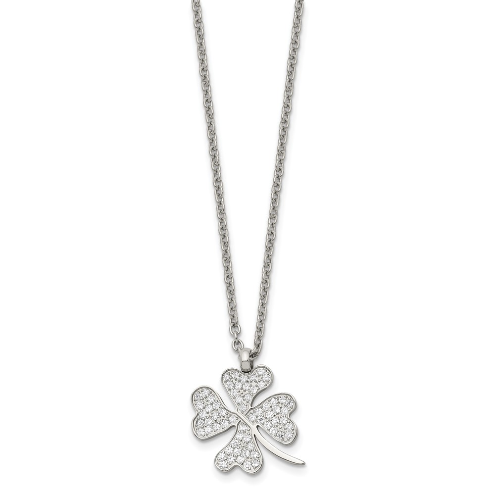 Chisel Stainless Steel Polished CZ Four Leaf Clover Pendant on a 22 inch Cable Chain Necklace