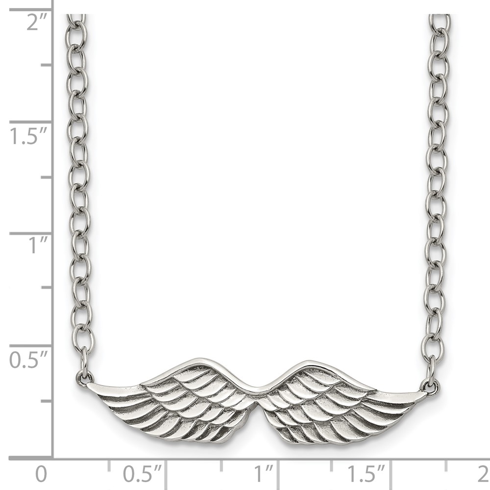 Stainless Steel Polished and Textured Angel Wings 16in w/2in ext Necklace