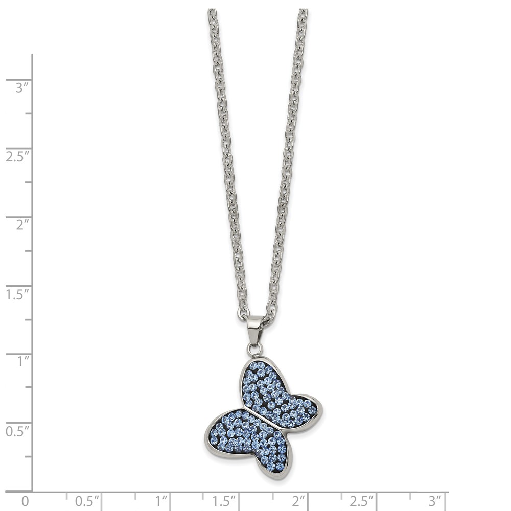 Chisel Stainless Steel Polished Blue Crystal Butterfly Pendant on a 22 inch Cable Chain Necklace