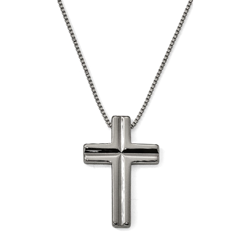Tungsten Cross Pendant with Stainless Steel 1.5 mm 24" Box Chain
