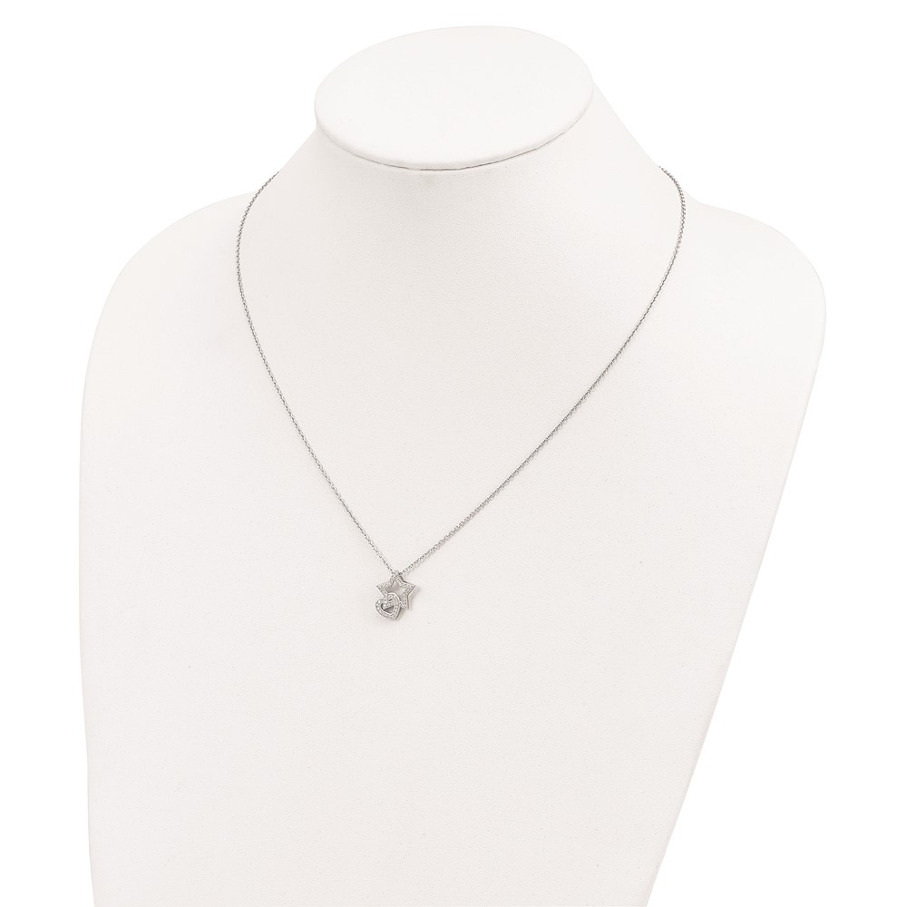 Brilliant Embers Sterling Silver Rhodium-plated 43 Stone 18 inch Micro Pavé CZ Heart and Star Necklace with 2 Inch Extender