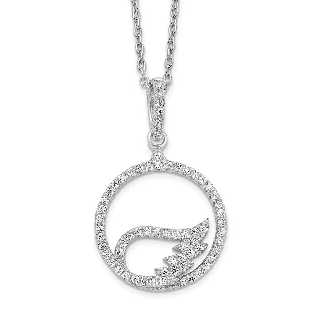 Brilliant Embers Sterling Silver Rhodium-plated 67 Stone 18 inch Micro Pavé CZ Wing Necklace with 2 Inch Extender
