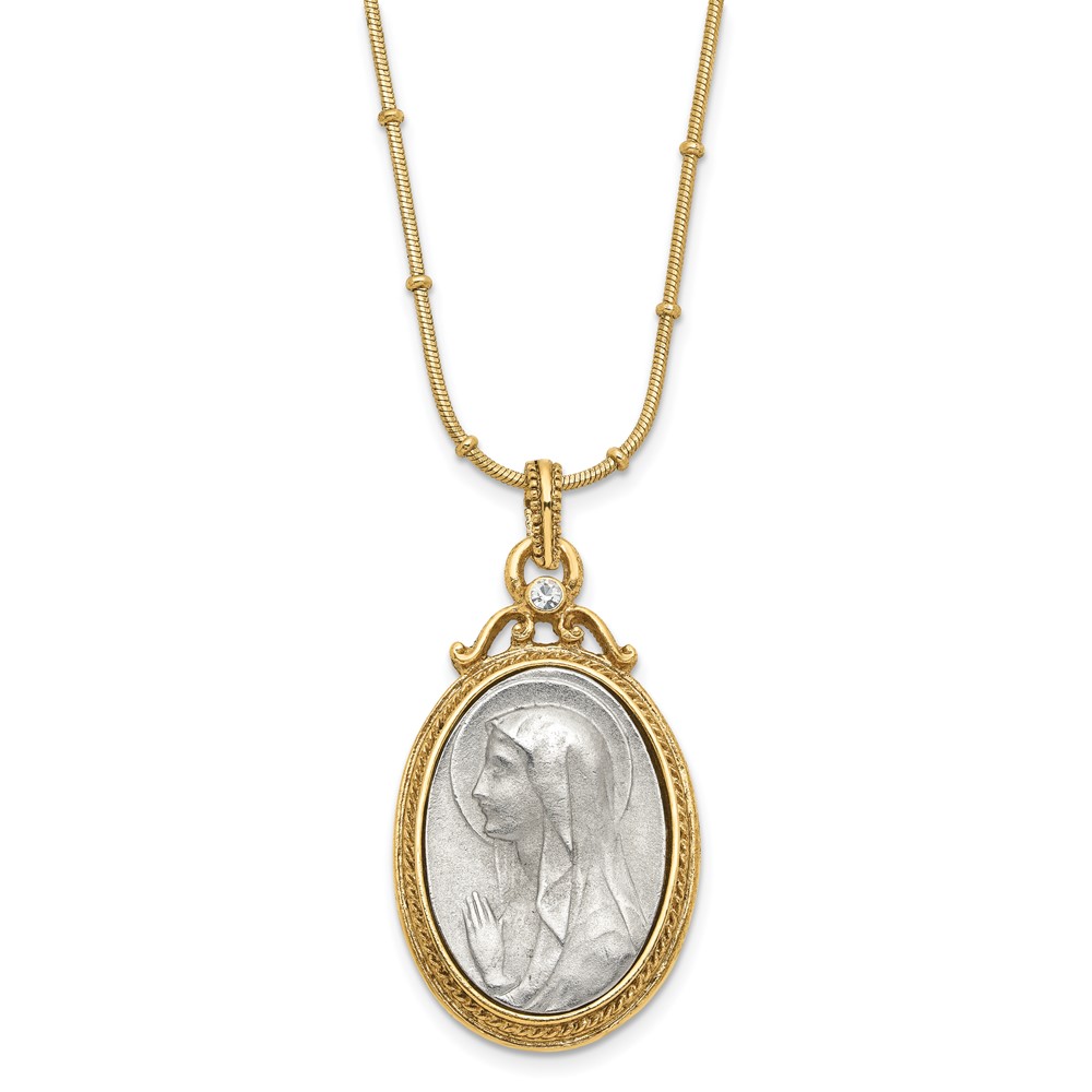 SOF Gold-tone and Silver-tone Crystal and Mary Miraculous Medal 20in Neckla