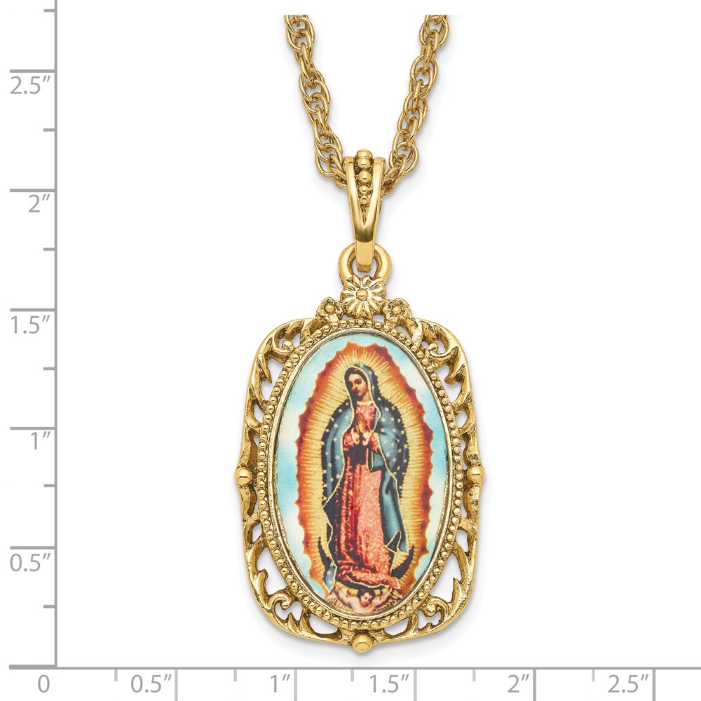 Symbols of Faith Gold-tone Enameled Our Lady of Guadalupe 24 inch Necklace