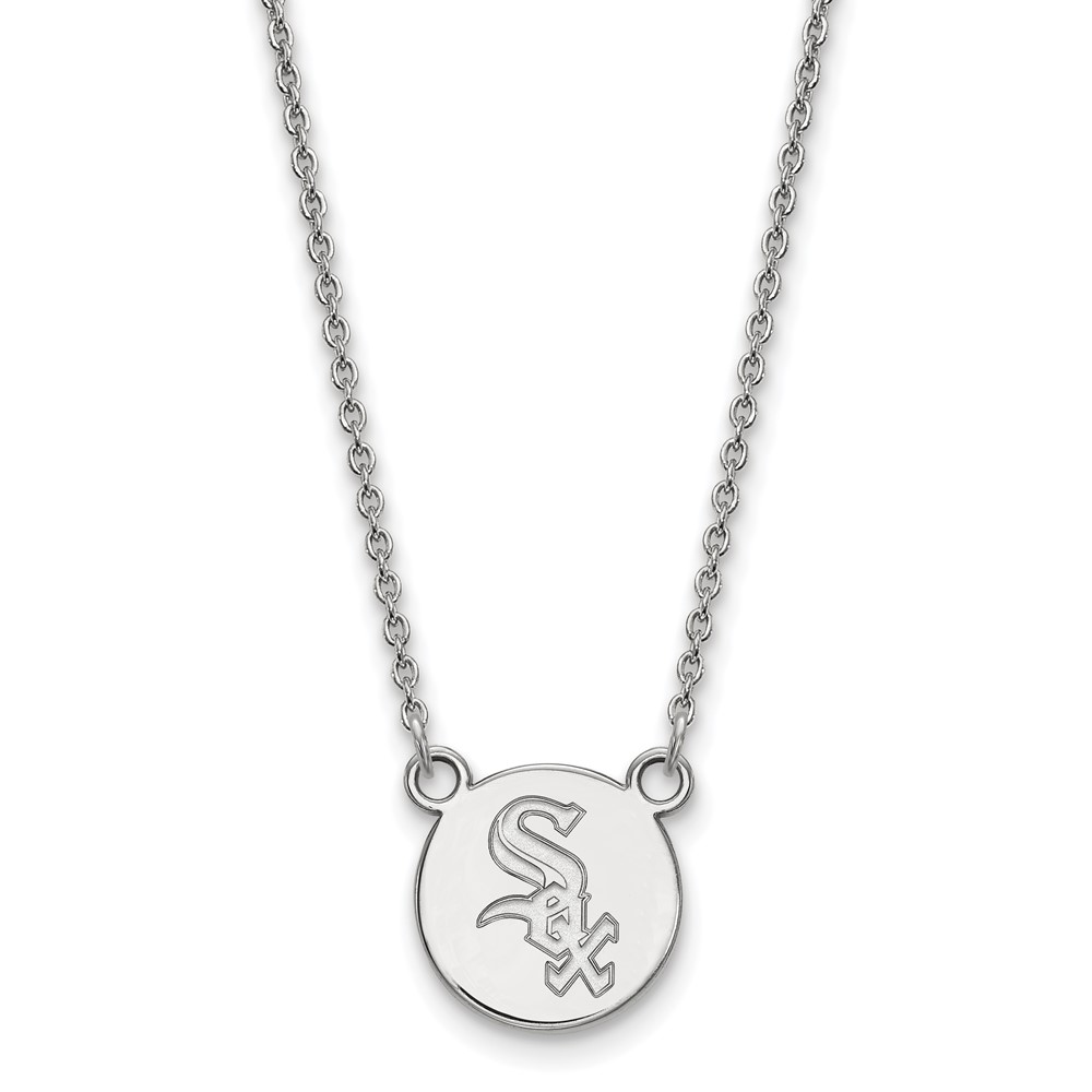 Sterling Silver Rhodium Plated Major League Baseball LogoArt Chicago White Sox Disc Necklace