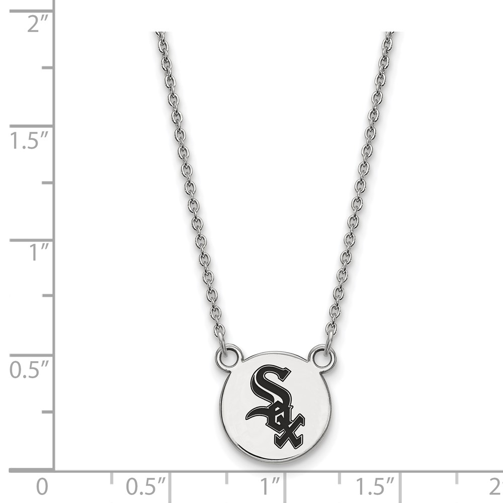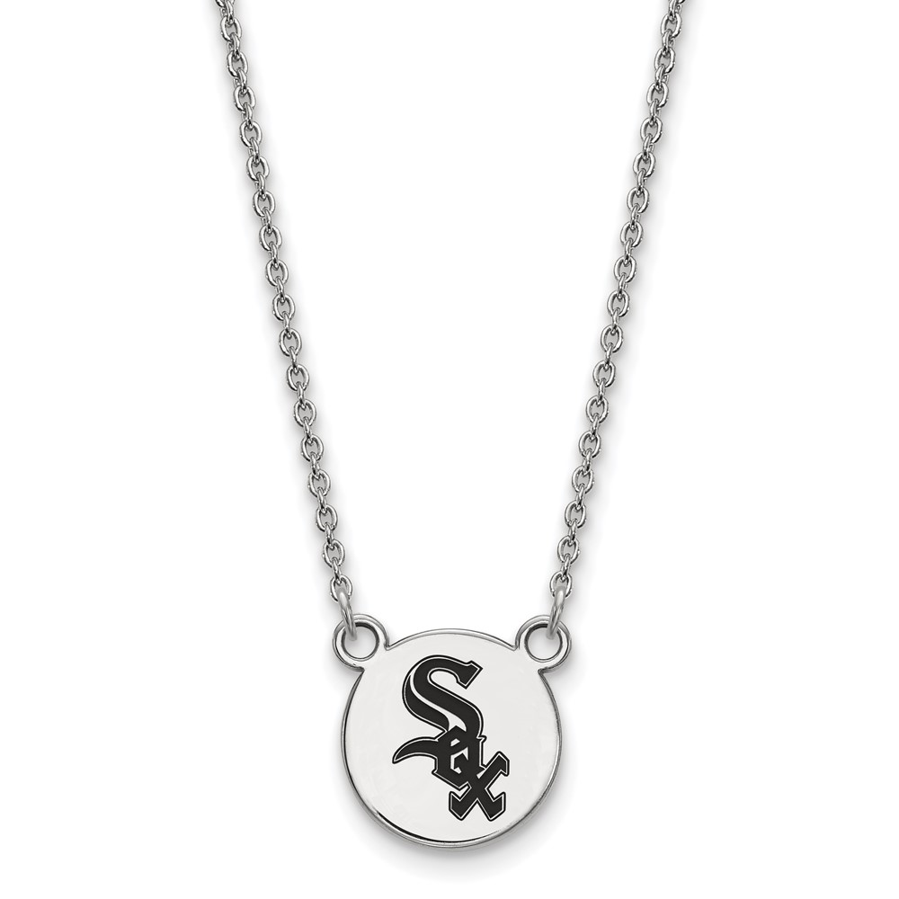 Sterling Silver Rhodium Plated Major League Baseball LogoArt Chicago White Sox Enamel Necklace