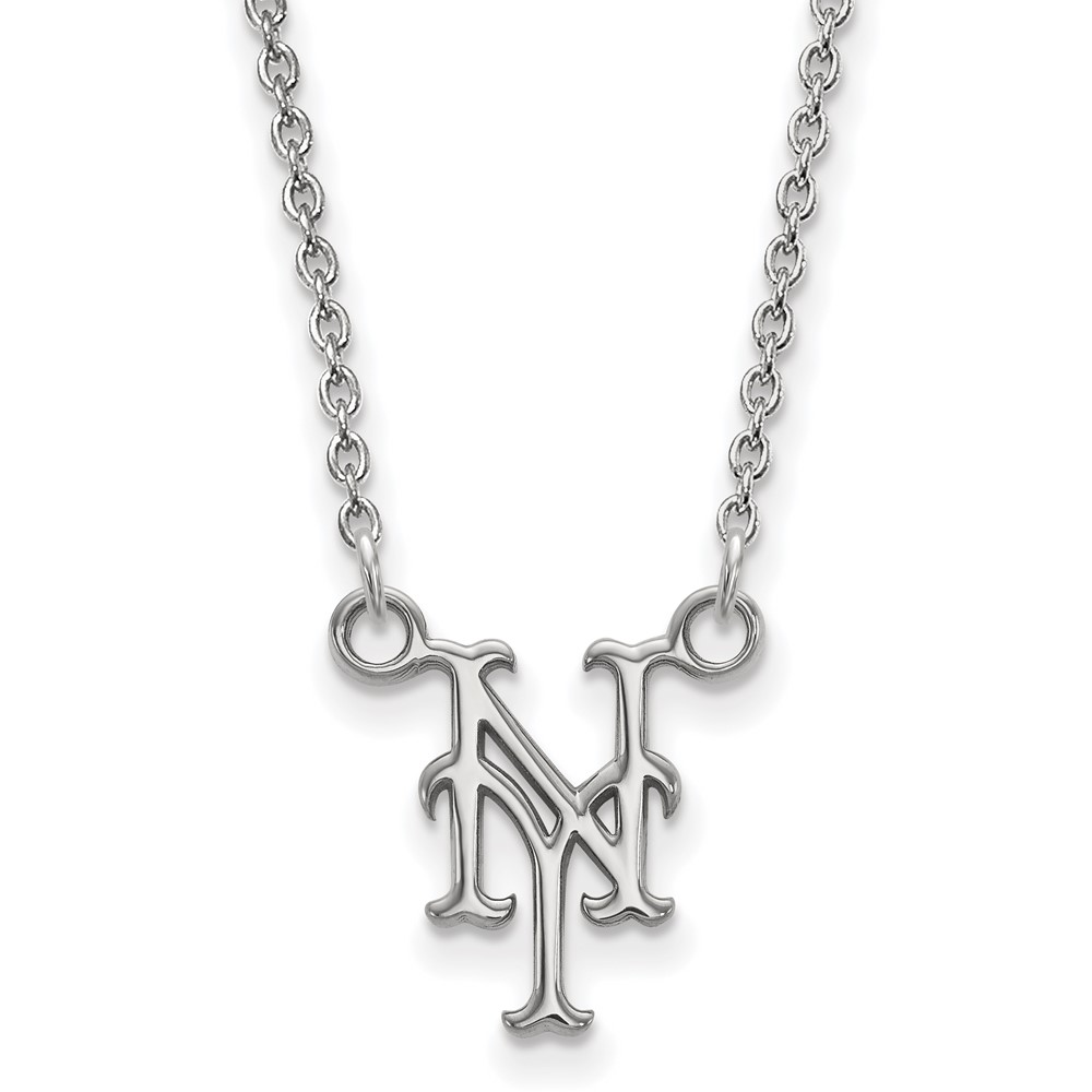 Sterling Silver Rhodium Plated Major League Baseball LogoArt New York Mets N-Y Pendant Necklace