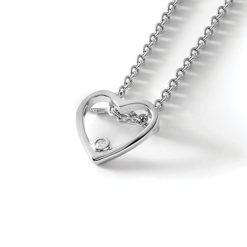White Ice Sterling Silver Rhodium-plated 18 Inch Diamond Open Heart Necklace with 2 Inch Extender