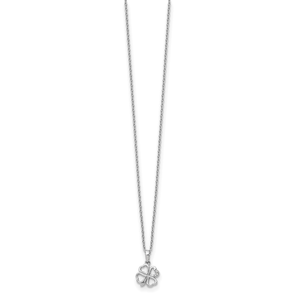White Ice Sterling Silver Rhodium-plated 18 Inch Diamond Clover Necklace with 2 Inch Extender
