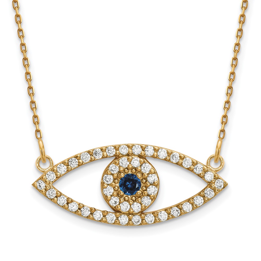 14k Medium Diamond and Sapphire Evil Eye Necklace
