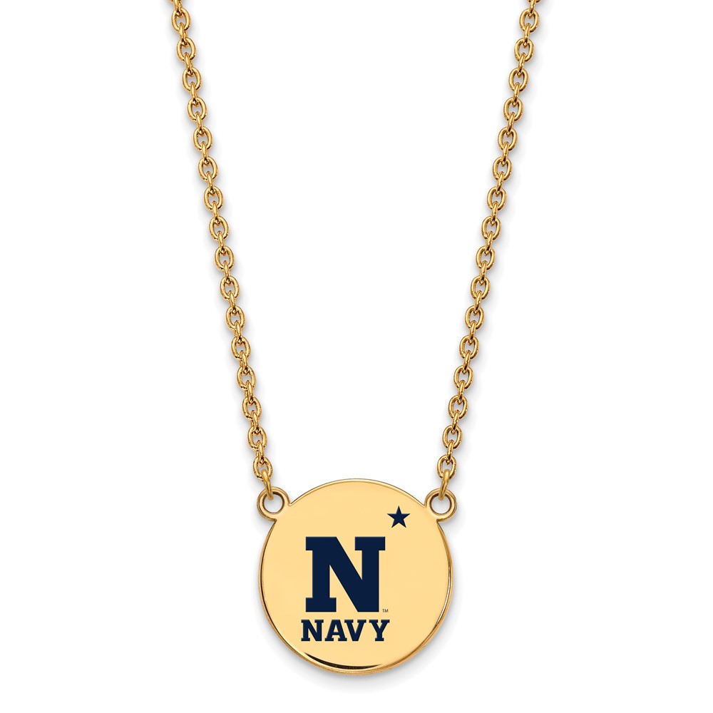 Sterling Silver Gold-plated LogoArt US Naval Academy Large Enameled Disc Pendant 18 inch Necklace