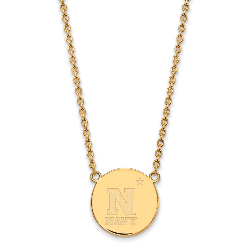 Sterling Silver Gold-plated LogoArt US Naval Academy Large Disc Pendant 18 inch Necklace