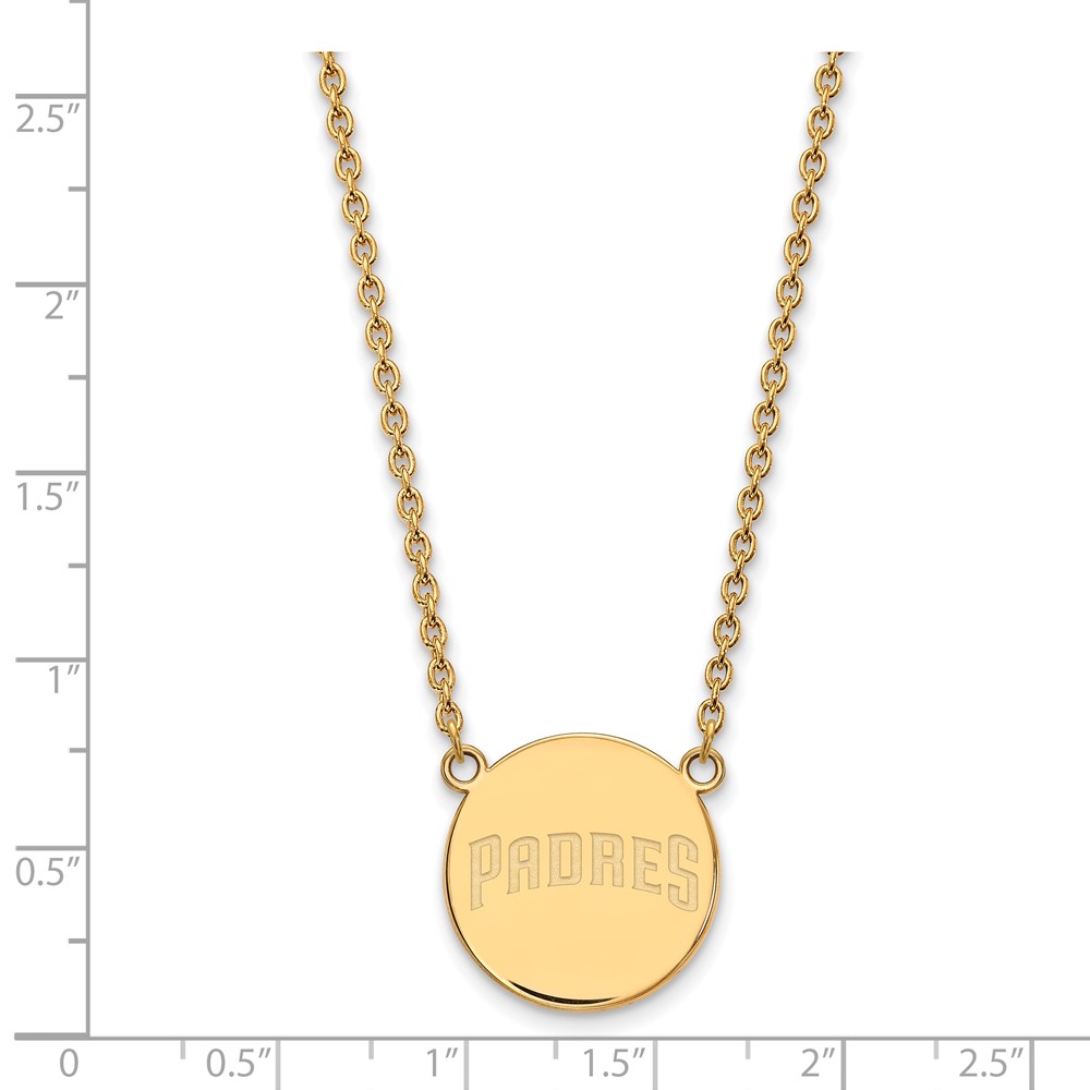 Sterling Silver Gold Plated Major League Baseball LogoArt San Padres Lrg. Disc Pendant Necklace