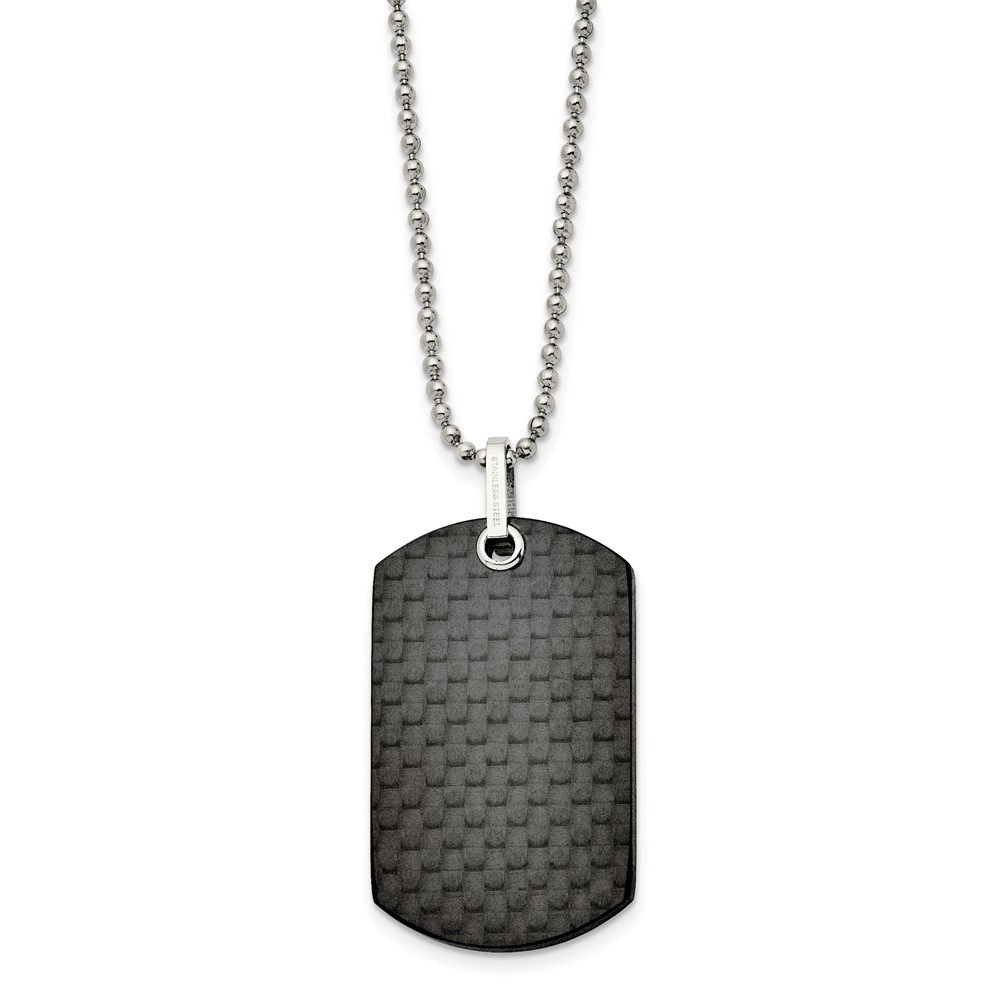 Stainless Steel 24in Polished Solid Black Carbon Fiber Dog Tag Necklace